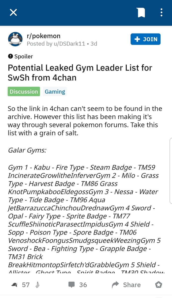 4チャンネルリーク記事「ガラル地方ジムリーダー」【評価C】